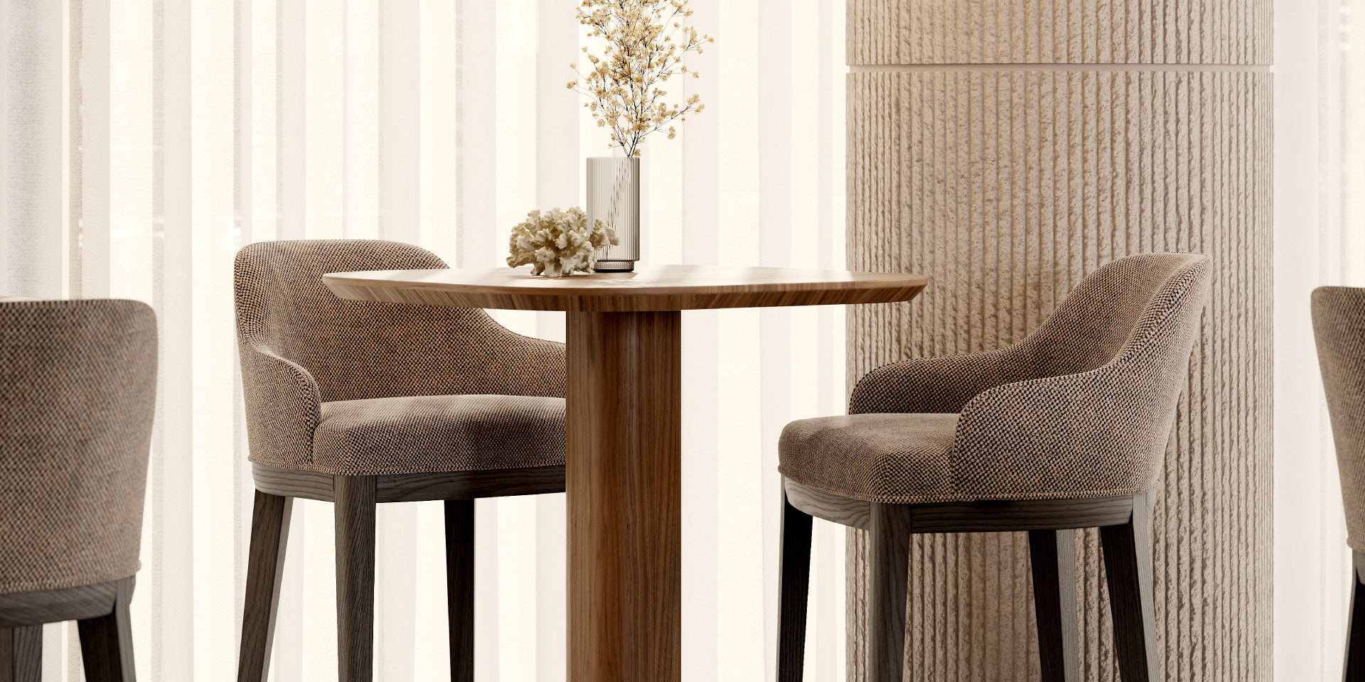 The Anna Bar Chair is a timeless design, shaped by a refined balance of style and functionality. Inspired by the Anna Dining Chair, it features a sleek, upholstered seat and backrest that provide exceptional comfort. The sturdy base is complemented by a metallic footrest, ensuring durability and ergonomic support.