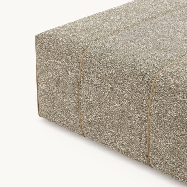 The Grant pouf merges elegance with ergonomic comfort, crafted to suit various design projects. Available in three sizes, it features elegant piping along the edges and contrast piping encircling the piece for a polished, classic look.