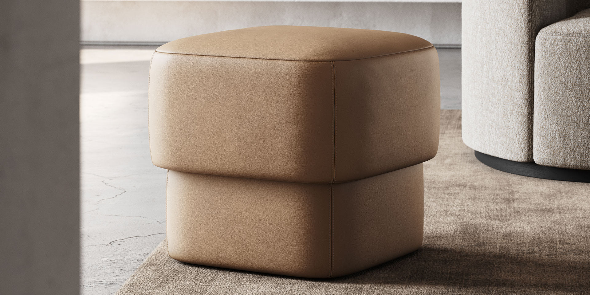 Kate pouf is the epitome of adaptable comfort with its fully upholstered design available in two sizes to suit diverse needs. Its clean, versatile lines make it a seamless addition to any room, easily paired with other furnishings for an understated, harmonious look.